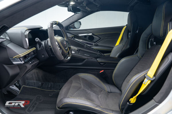 HIGH Spec Z06! Fabspeed Sport Cats exhaust! Sounds insane!!!! Graham Rahal Performance is excited to bring you this spectacular C8 Corvette Z06. It is finished in Silver Flare Metallic over Jet Black Interior. Features Fabspeed Sport Cats exhaust! Sounds insane!!!! Power -5.5L V8 -Producing 670 Horsepower and 460 lb-ft of Torque Drivetrain -8 Speed DCT -Rear Wheel Drive Options – Silver Flare Metallic Exterior – Jet Black Interior – Carbon Fiber Wheels – Carbon Ceramic Brakes – Carbon Fiber Interior Trim Lvl 2 – Front Lift Adjustable Height – Visible Carbon Fiber Removable – Roof Panel w/ Body Color – Carbon Flash Full Length – Dual Racing Stripe – Yellow Painted Calipers – Carbon Fiber and Sueded Steering Wheel – Stealth Interior Trim pkg – Engine Intake in Red – Yellow Seat Belt – Yellow Custom Leather Stitch – Carbon Flash Center Caps w/ Crossed Flags – Black Lug Nuts – Black Wheel Locks – Battery Protection Pkg – Window Sticker MSRP $159,340
