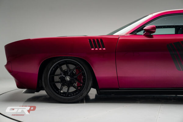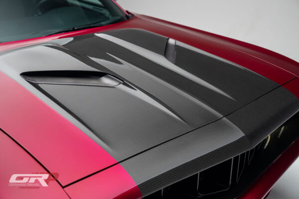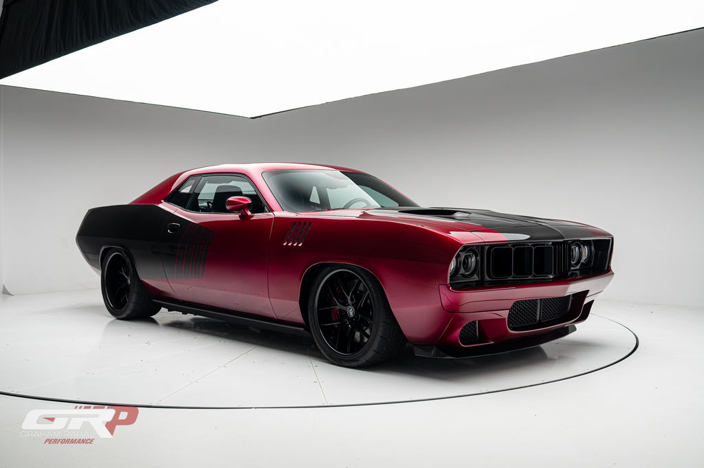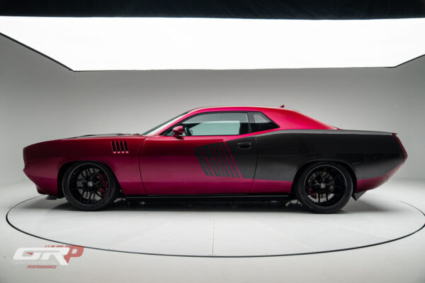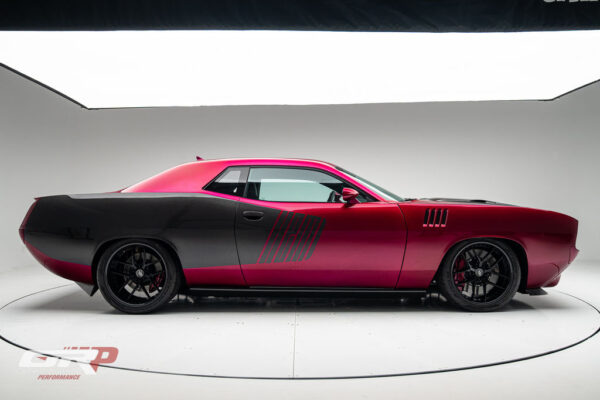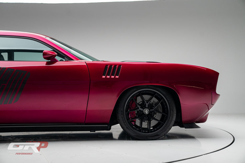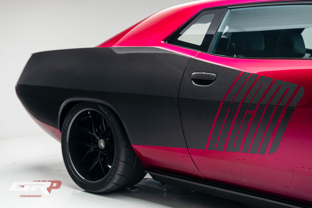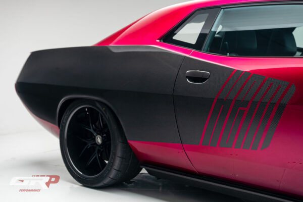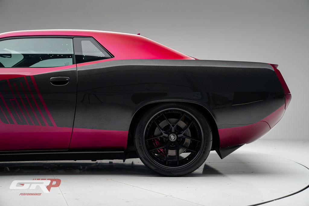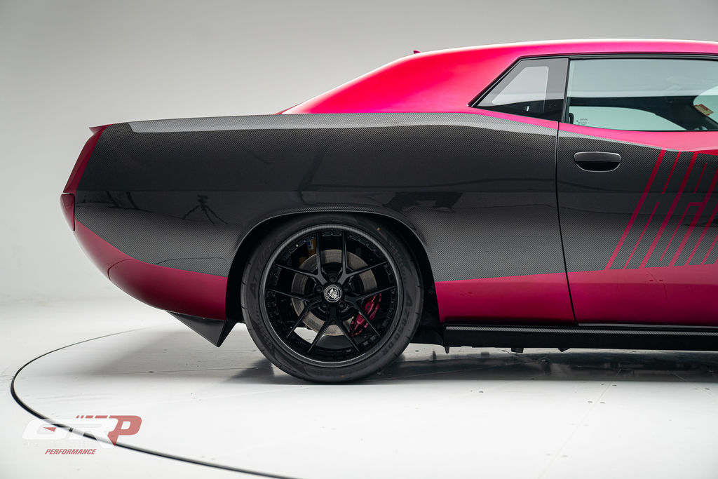 Custom 1971 Cuda Conversion – Full Carbon Fiber Body!!! Custom 1971 Cuda Conversion Prepreg carbon fiber body CNC-ed custom accents and grille No. 4 of 10 to be produced Custom Pink Metallic 4 stage Candy Paint with clear carbon hood and hemi graphic Interior and carbon fiber engine surround Color match calipers and interior accents Alcantara lowers and carbon fiber uppers Over 3,000 hours in build