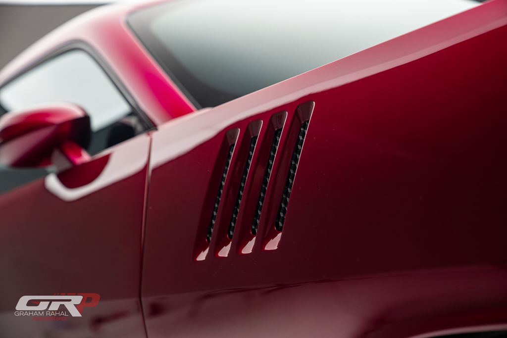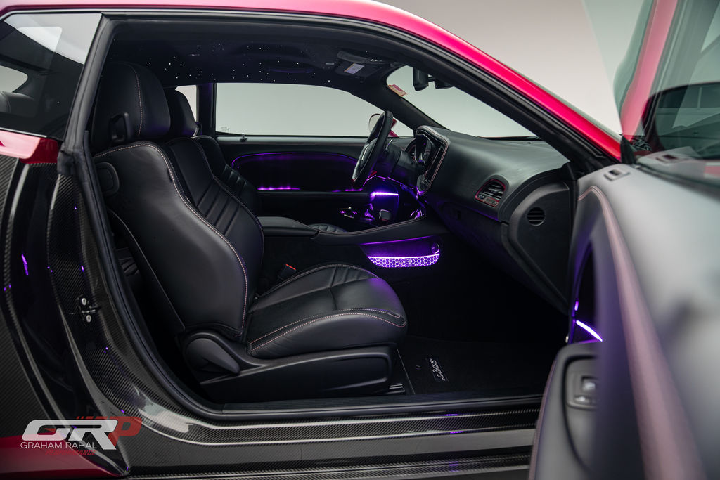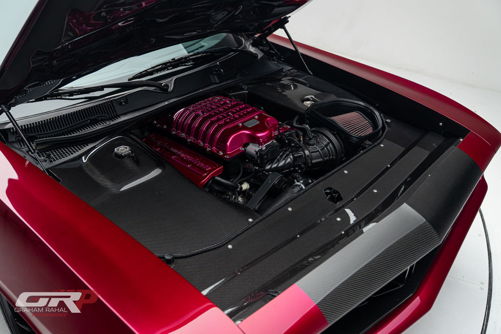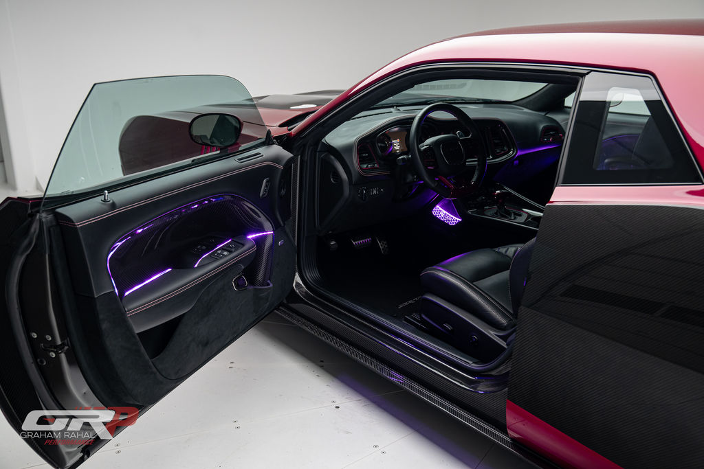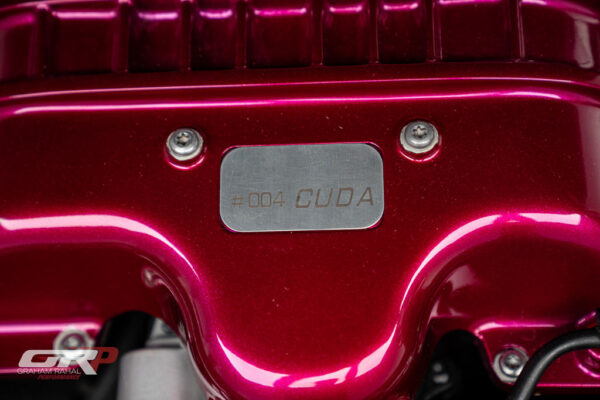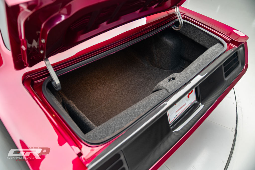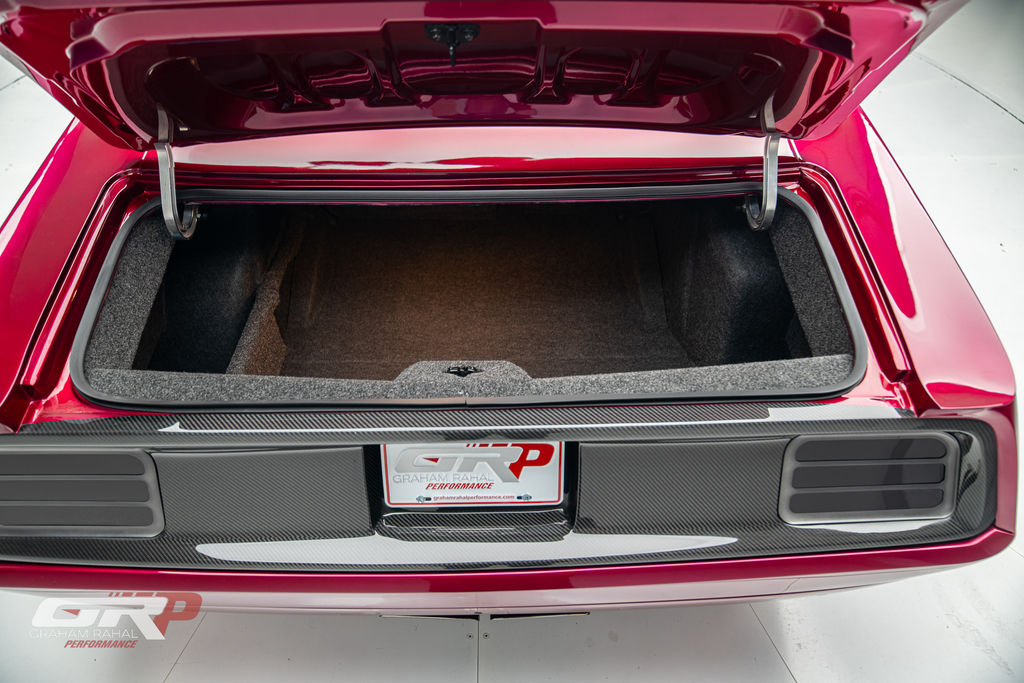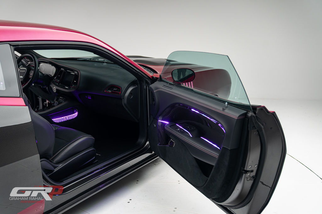 Custom 1971 Cuda Conversion – Full Carbon Fiber Body!!! Custom 1971 Cuda Conversion Prepreg carbon fiber body CNC-ed custom accents and grille No. 4 of 10 to be produced Custom Pink Metallic 4 stage Candy Paint with clear carbon hood and hemi graphic Interior and carbon fiber engine surround Color match calipers and interior accents Alcantara lowers and carbon fiber uppers Over 3,000 hours in build